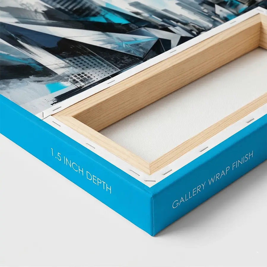 Gallery Wrap Finishing: This premium finishing technique involves stretching the printed canvas tightly over a rigid wooden stretcher bar, wrapping the image around the edges for a seamless, 3D effect. It eliminates the need for external framing, offering a clean, contemporary look perfect for modern office renovations and upscale homes.