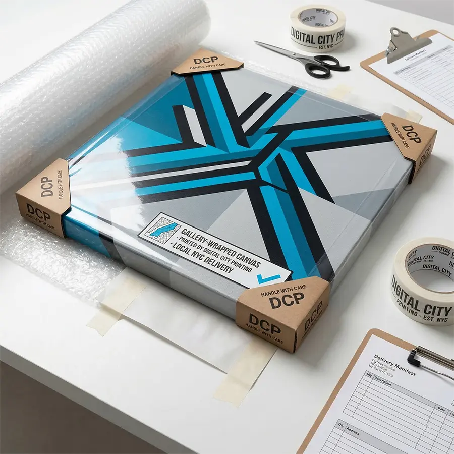 Local Manhattan Print Shop: Skip the shipping delays and transit damage. Pick up your high-end artwork directly from our midtown facility or enjoy rapid local courier delivery directly to your site.
