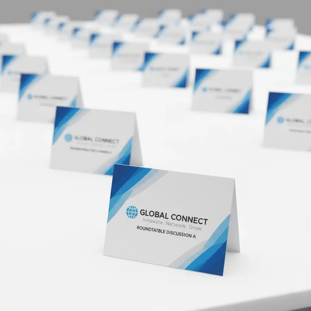 - Branded Table Tents: Elevate your brand's presence on any surface with custom-printed table tents. These versatile, self-standing displays are perfect for showcasing menus, promotions, event schedules, or key messages in a clear, professional, and eye-catching way at conferences, restaurants, or retail spaces.